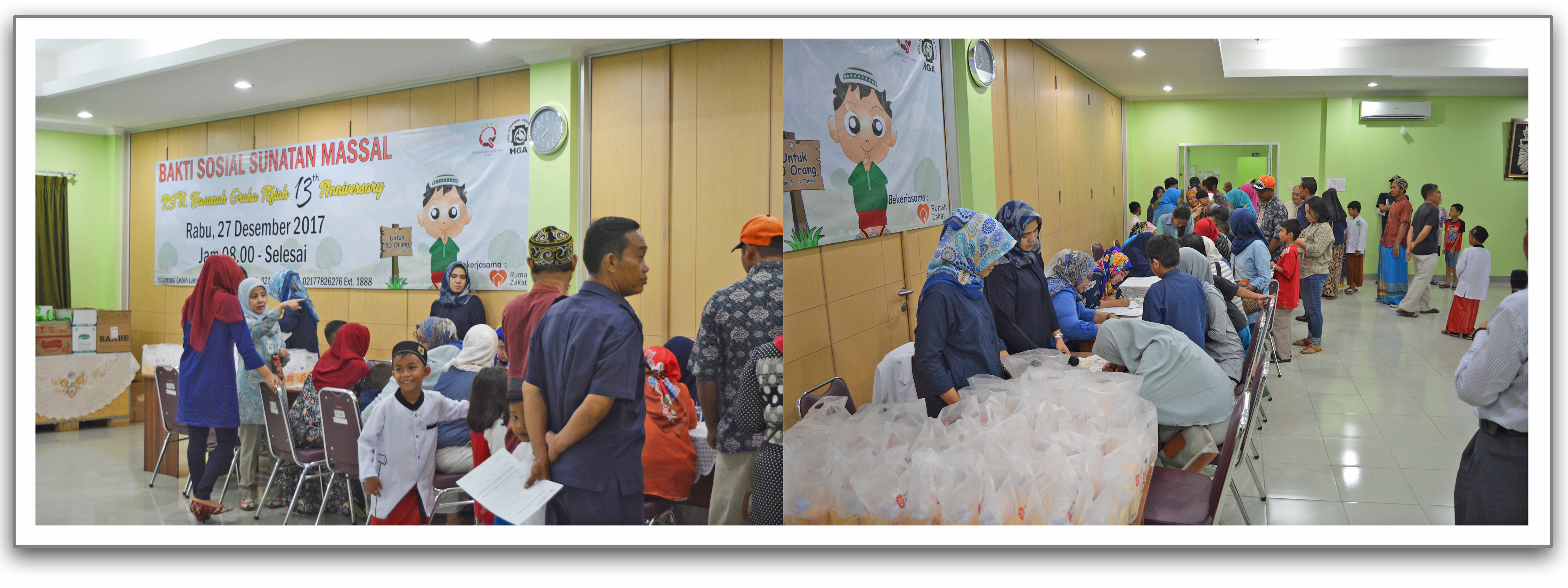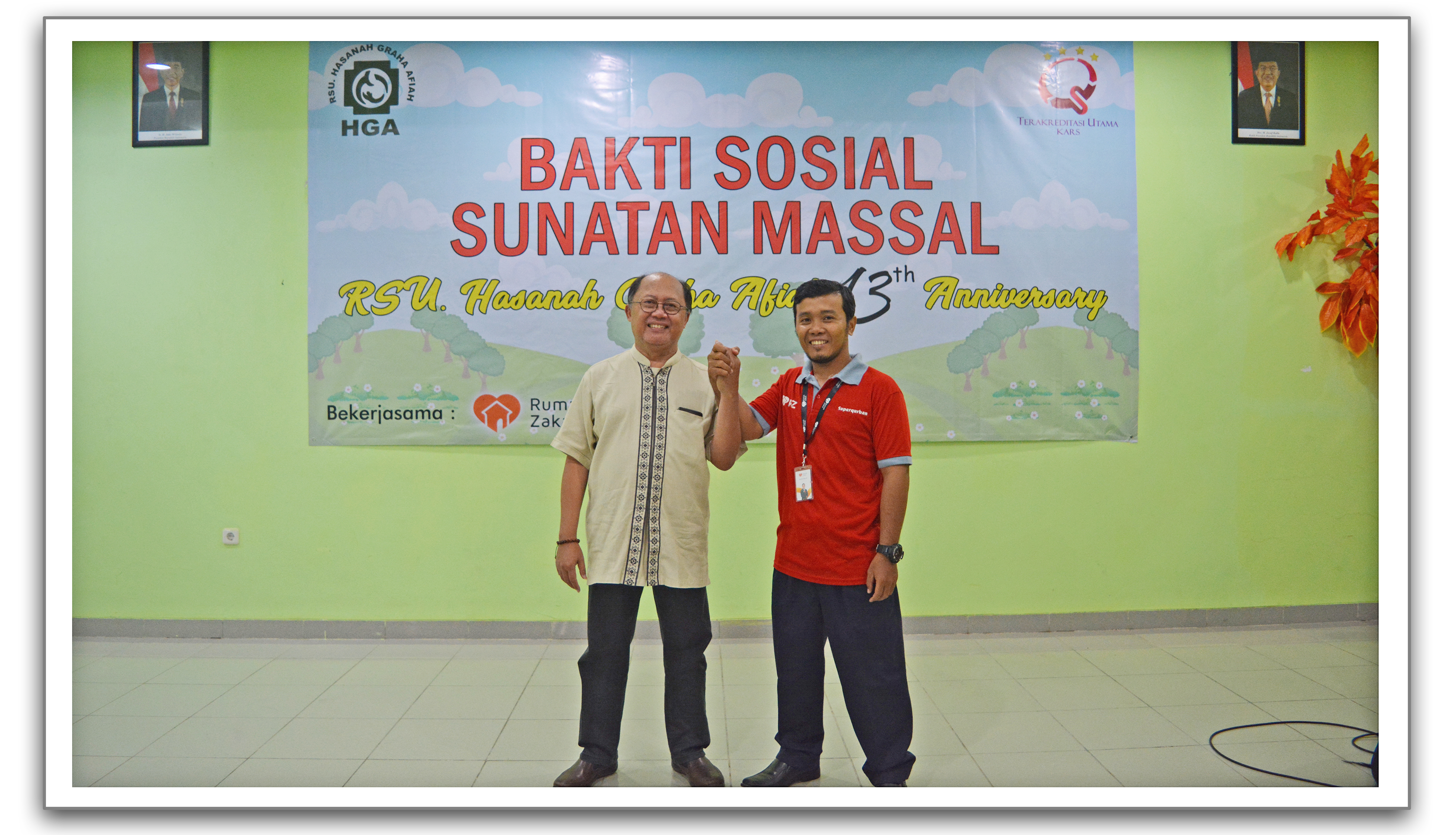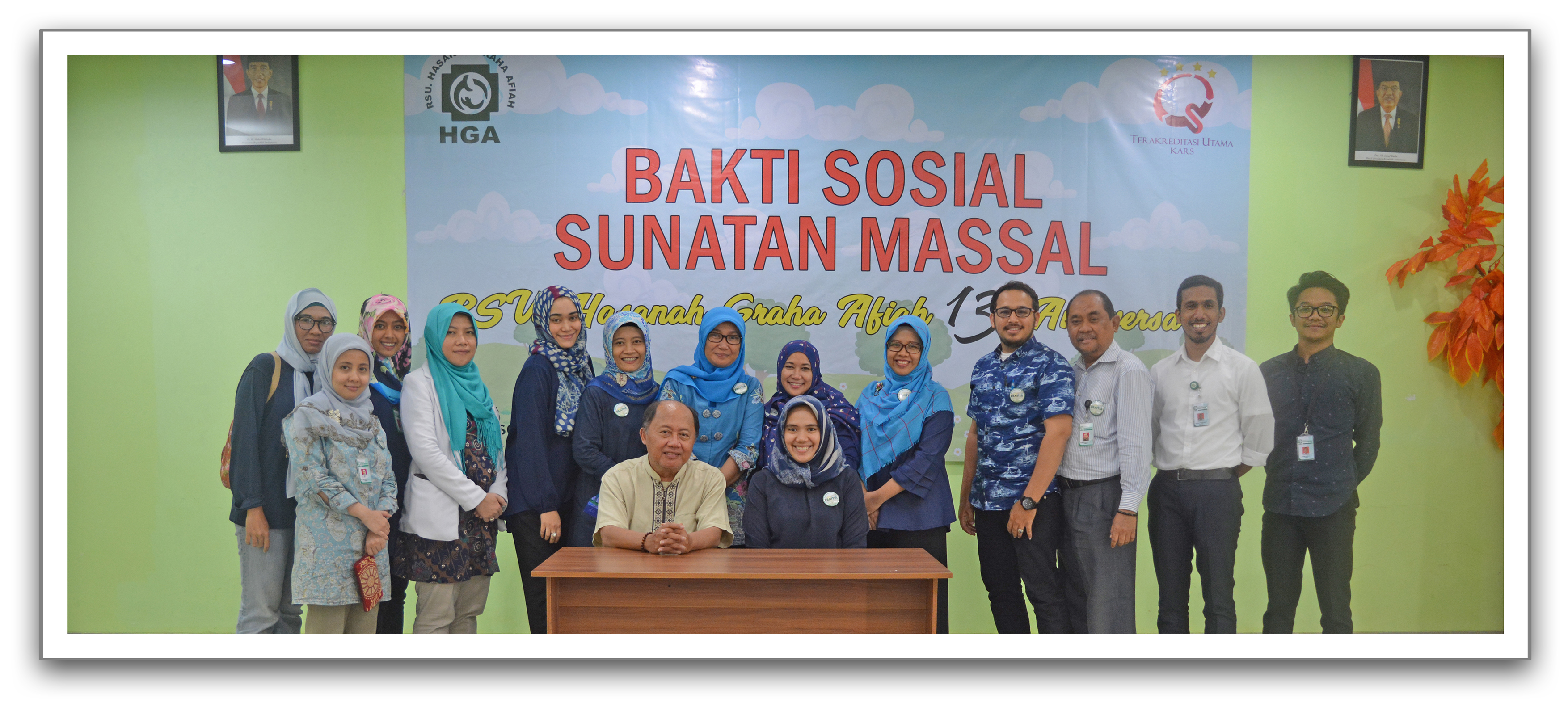 - Sebagai bentuk kepedulian sosial masyarakat sekitar Kecamatan Sukmajaya, RSU Hasanah Graha Afiah bekerjasama dengan Rumah Zakat mengadakan kegiatan Bakti Sosial Sunatan Massal yang di gelar pada hari Rabu, 27 Desember 2017. Bentuk kepedulian masyarakat tersebut dilakukan dalam rangka menyambut Hari Ulang Tahun RSU Hasanah Graha Afiah ke-13 tahun, yang jatuh dibulan Januari 2018 nanti.