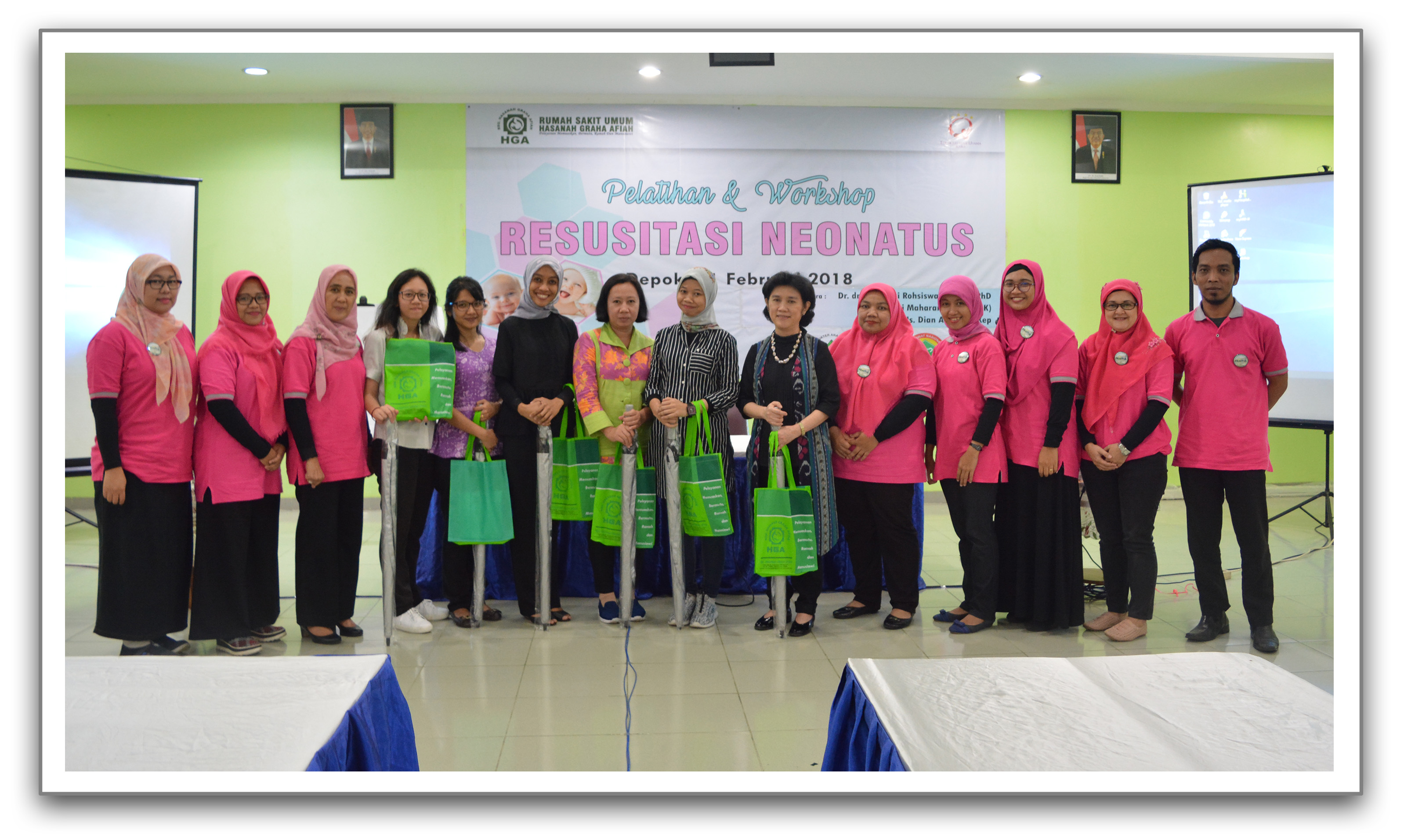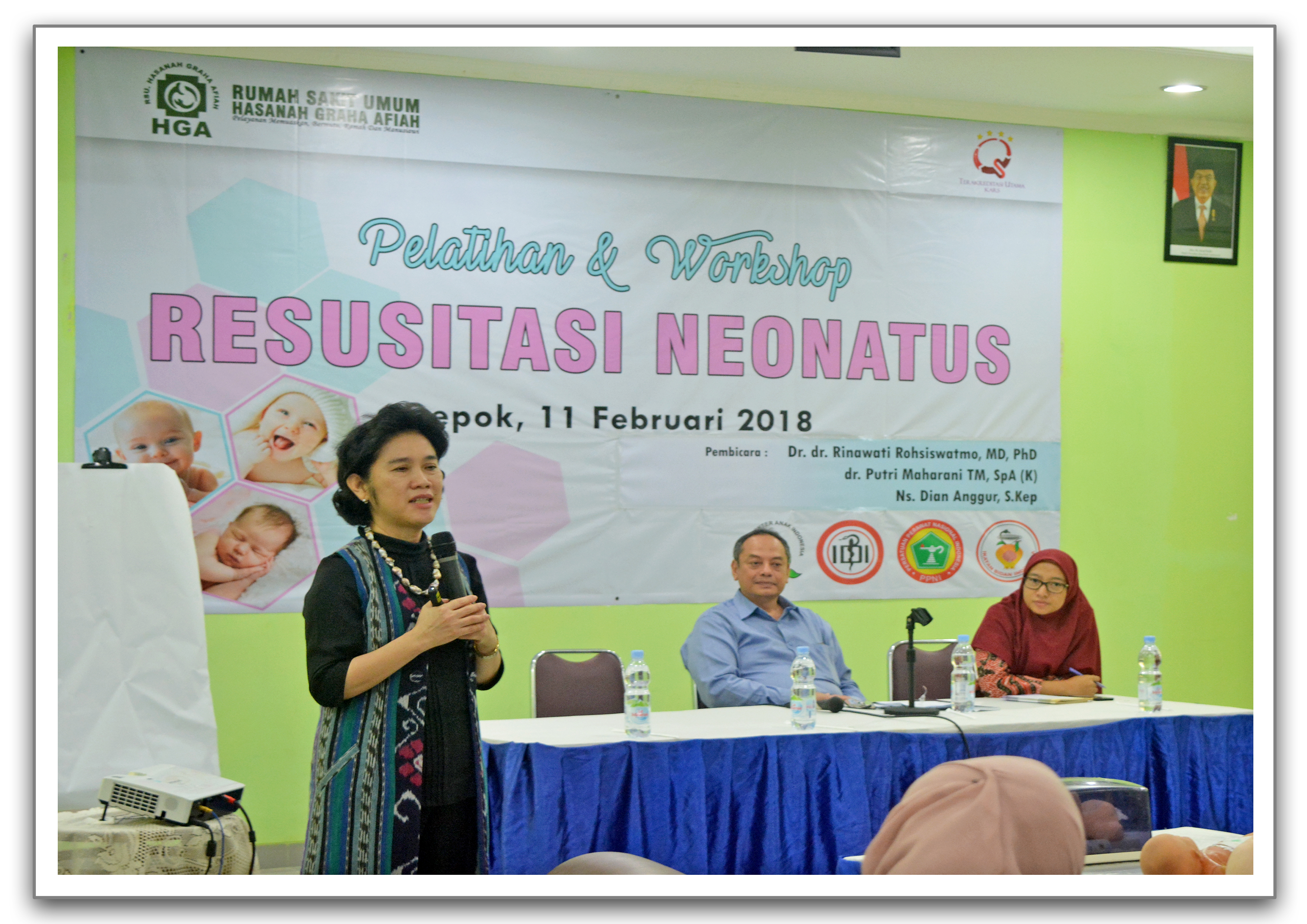 Untuk itu RSU Hasanah Graha Afiah menggelar Pelatihan & Workshop “RESUSITASI NEONATUS” pada hari Minggu, 11 Februari 2018. Dengan narasumber Dr. dr. Rinawati Rohsiswatmo, MD, PhD, dr. Putri Maharani TM, Sp.A (K) dan Ns. Dian Anggur, S.Kep beserta tim dari Divisi Perinatologi Departemen IKA (Ilmu Kesehatan Anak) RSUPN Cipto Mangunkusumo yang memaparkan tentang Fisiologis Bayi Baru Lahir, Penanganan Paripurna Bayi Prematur sejak dari Ruang Bersalin hingga upaya menurunkan angka infeksi di ruang NICU.