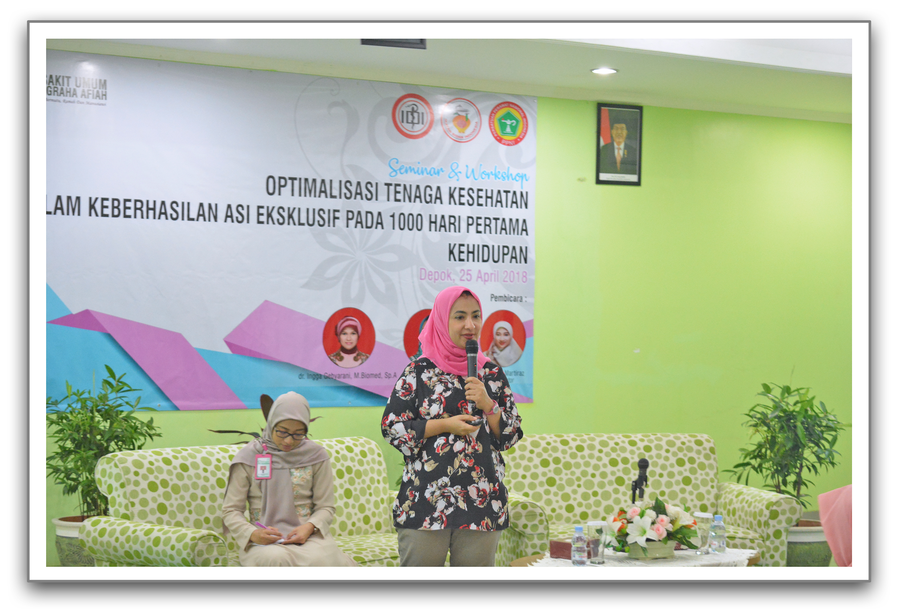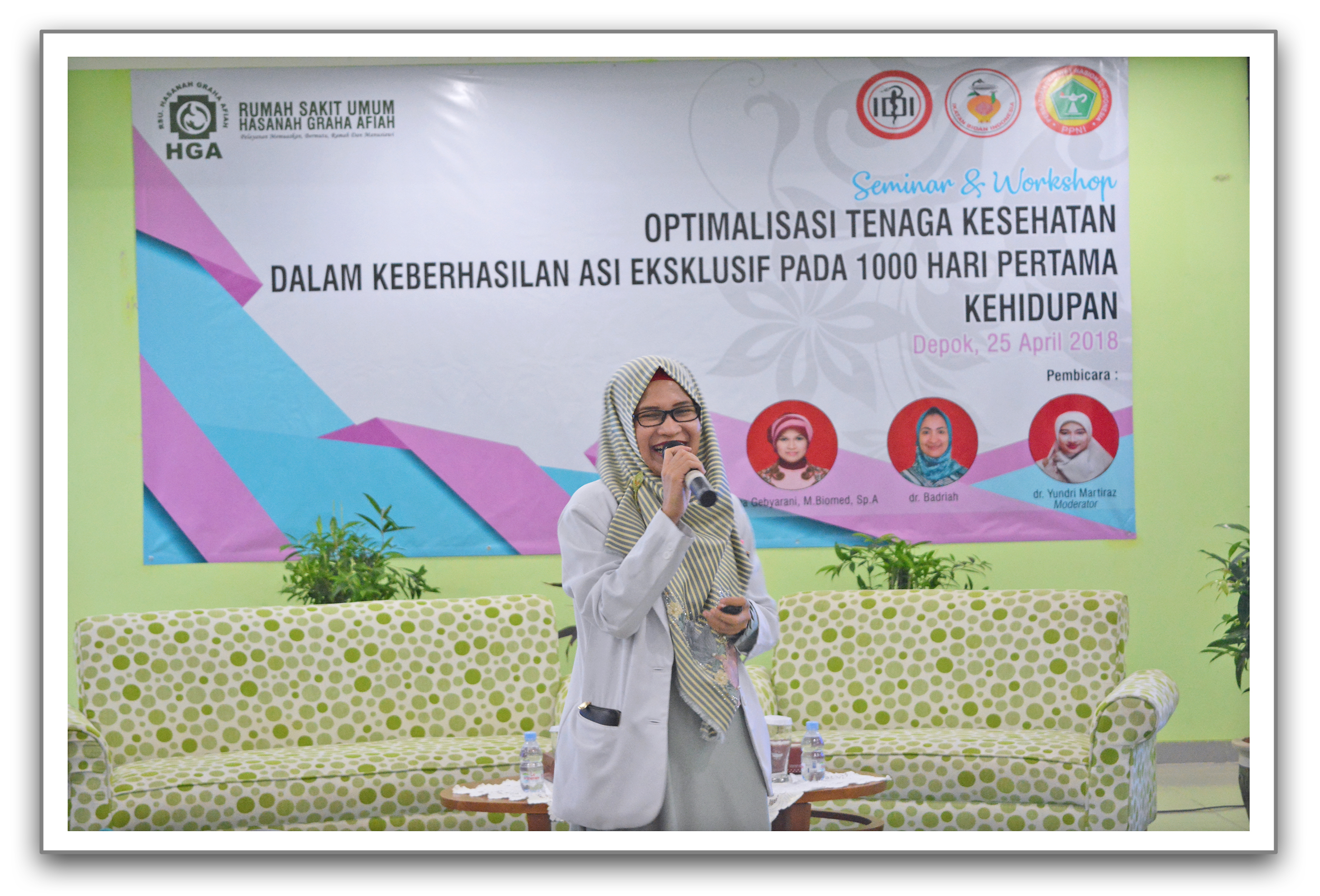 Dengan pembicara dr. Ingga Gebyarani, M.Biomed, Sp.A dan dr. Badriah yang memaparkan hal-hal yang perlu diperhatikan pada proses menyusui.